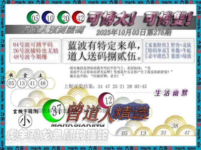 276期:男女二肖【女肖+龙狗】开:鸡09准