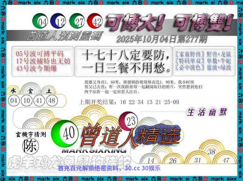 277期:男女二肖【男肖+羊蛇】开:虎16准