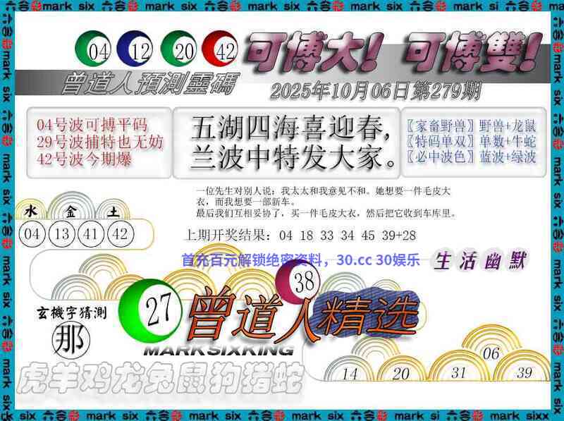 280期:男女二肖【男肖+羊兔】开:鼠42准